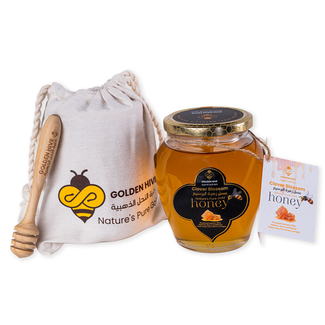 عسل البرسيم النقي عالي الجودة، غني بالمعادن والطاقة الطبيعية، مثالي للتحلية اليومية.